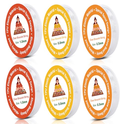 Alyvisun 6 Pcs Fil Elastique pour Bracelet,(0.5mm, 0.8mm & 1mm) Fil pour Bracelet Perle pour Les Bracelets, Colliers, Perles et La Fabrication De Bijoux en DIY (Transparent)