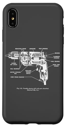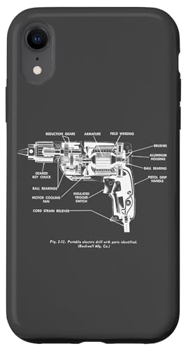 Vintage Portable Electric Drill Blueprint Diagram Graphic Coque pour iPhone XR
