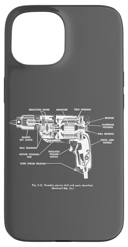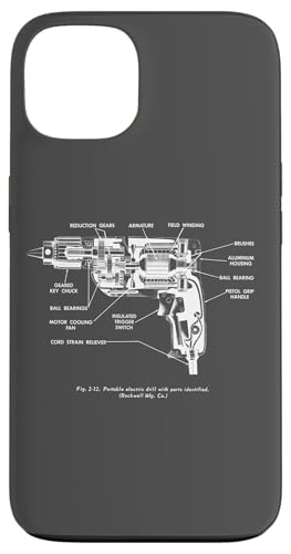 Vintage Portable Electric Drill Blueprint Diagram Graphic Coque pour iPhone 13
