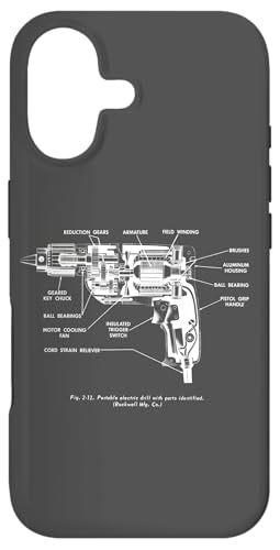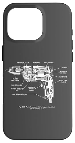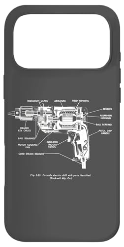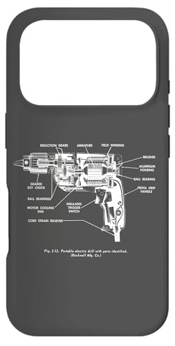 Vintage Portable Electric Drill Blueprint Diagram Graphic Coque pour iPhone 17 Pro