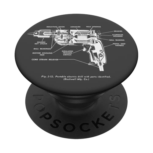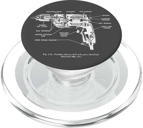 Vintage Portable Electric Drill Blueprint Diagram Graphic PopSockets PopGrip pour MagSafe