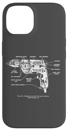 Vintage Portable Electric Drill Blueprint Diagram Graphic Coque pour iPhone 15