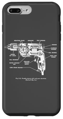 Vintage Portable Electric Drill Blueprint Diagram Graphic Coque pour iPhone 7 Plus/8 Plus