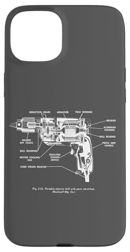 Vintage Portable Electric Drill Blueprint Diagram Graphic Coque pour iPhone 15 Plus