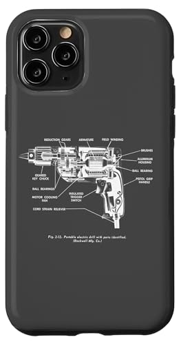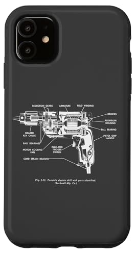 Vintage Portable Electric Drill Blueprint Diagram Graphic Coque pour iPhone 11