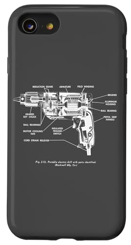 Vintage Portable Electric Drill Blueprint Diagram Graphic Coque pour iPhone SE (2020) / 7/8