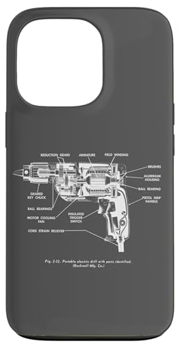 Vintage Portable Electric Drill Blueprint Diagram Graphic Coque pour iPhone 13 Pro