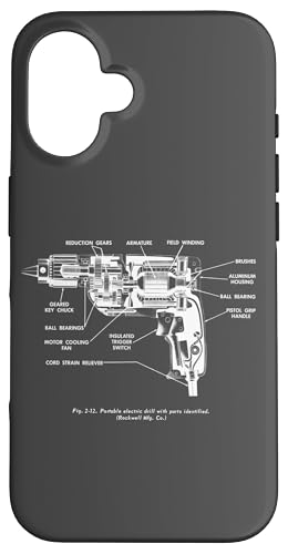 Vintage Portable Electric Drill Blueprint Diagram Graphic Coque pour iPhone 16
