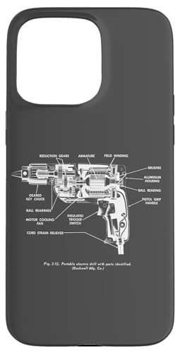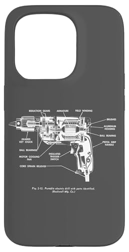 Vintage Portable Electric Drill Blueprint Diagram Graphic Coque pour iPhone 15 Pro Max
