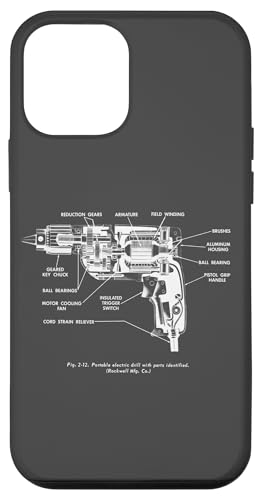 Vintage Portable Electric Drill Blueprint Diagram Graphic Coque pour iPhone 12 Pro Max