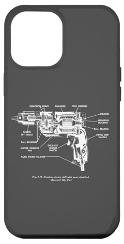 Vintage Portable Electric Drill Blueprint Diagram Graphic Coque pour iPhone 13 Pro Max