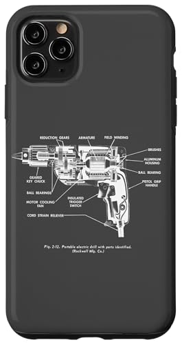Vintage Portable Electric Drill Blueprint Diagram Graphic Coque pour iPhone 11 Pro Max