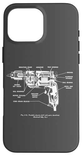 Vintage Portable Electric Drill Blueprint Diagram Graphic Coque pour iPhone 16 Pro Max