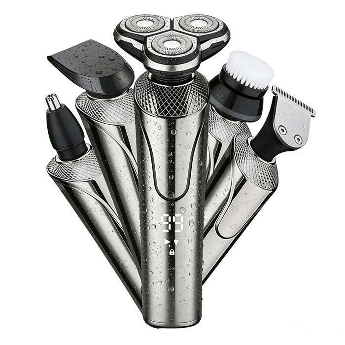 Rasoir Électrique Hommes 5 en 1 Tondeuse à Barbe Sans Fil Electric Shaver avec Écran LED Tondeuse Cheveux avec Base