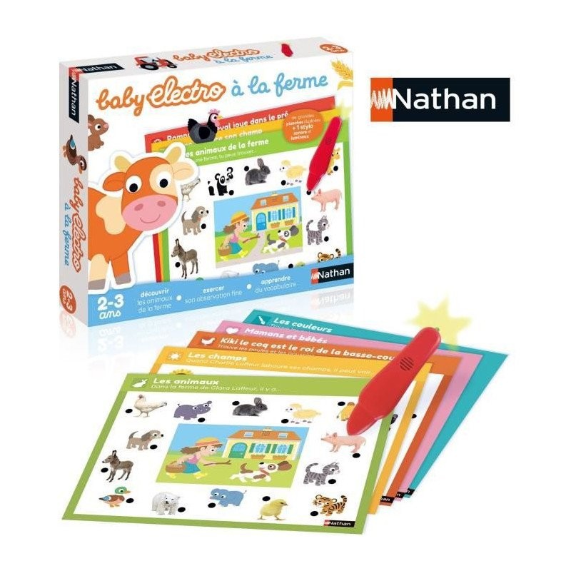 Nathan - Baby Electro à la Ferme - Découverte Des Animaux de la Ferme - Jeu Educatif Electronique - 1 Stylo Sonore et Lumineux Inclus - Pour Enfants de 2 à 3 ans