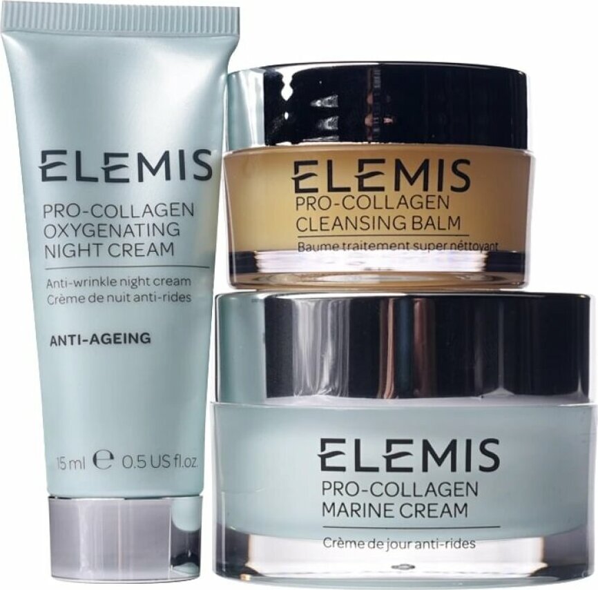 Sada Elemis VIP : Elemis Pro-Collagen Crème de nuit oxygénante 15ml + Elemis Pro-Collagen Crème marine 30ml + Elemis Pro-Collagen Baume nettoyant 20g