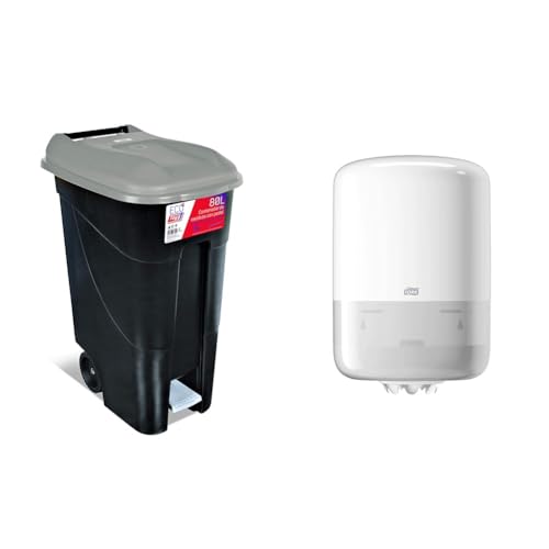 Tayg 80P Poubelle Noir/gris 80 l & Tork 559000 Distributeur de papier d'essuyage à dévidage central M2 - Design Elevation - Blanc