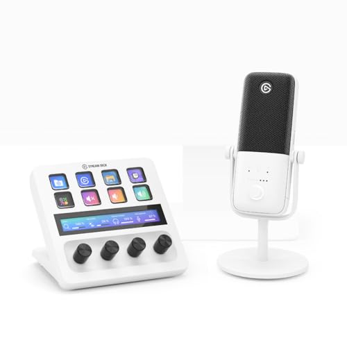 Elgato USB Audio Mix Blanc - Table de mixage audio, contrôleur de studio, microphone à condensateur USB pour le podcasting, le streaming, les créateurs de contenu, cadrans et touches LCD, PC/Mac