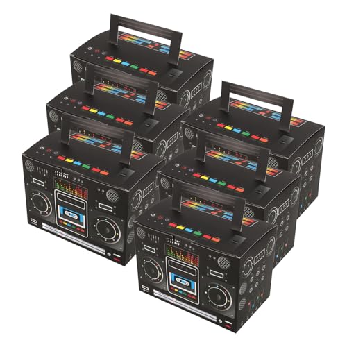 Luxshiny Lot de 6 Boîtes à Friandises Vintage Forme Radio 80’s en Carton Robuste Noir, pour Emballage Présents Fête, Décorations Table Anniversaire, Boîte à Gâteau Portable et Seau