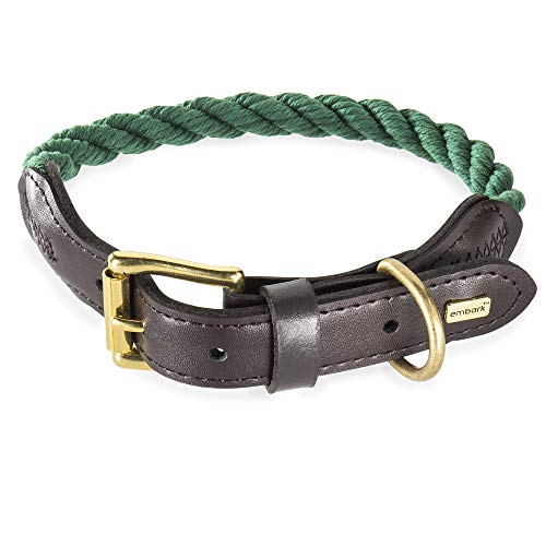 Embark Pets Country Dog Collier pour chien en corde – Coton tressé et finition cuir – Tailles S, M, L et XL – Construction durable et solide pour le dressage,la marche,la course (petit, blanc)