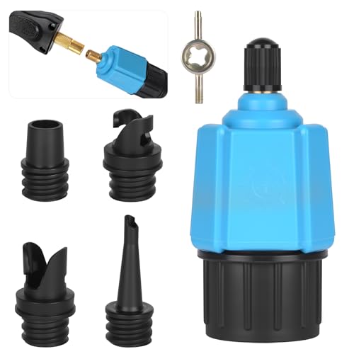 Adaptateur Gonfleur Paddle compatible pompe standard, 5 en 1 adaptateur de valve pour planche à pagaie kayak canot bateau gonflable, embout de gonflage avec 4 buses d’air, facile à transporter