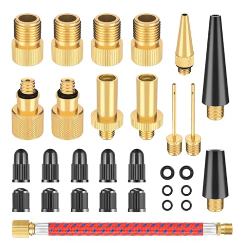 Romon 30 Pièces Adaptateur de Pompe à Vélo, Kit de Adaptateur de Valve de Vélo DV AV SV, Embout Pompe Velo avec Vague D'étanchéité, pour Pompe à Vélo, Compresseurs Pompes