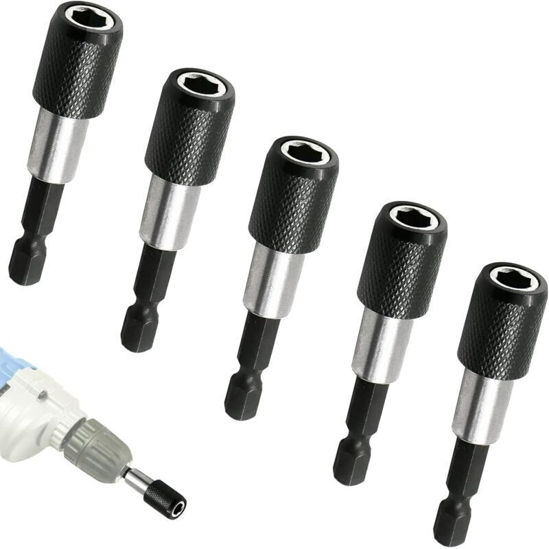 5 Pièces Porte Embout Magnetique, 1/4" 60mm Porte Embout Visseuse a choc, pour cloison sèche et enfoncer des vis à montage rapide dans des plaques de