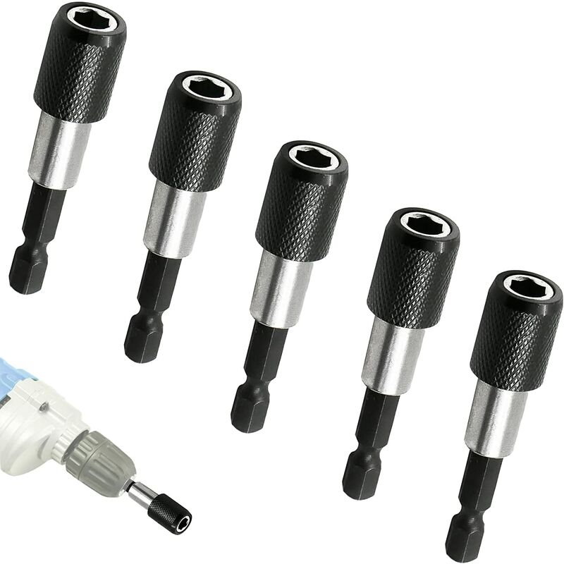 5 Pièces Porte Embout Magnetique, 1/4' 60mm Porte Embout Visseuse a choc, pour cloison sèche et enfoncer des vis à montage rapide dans des plaques de