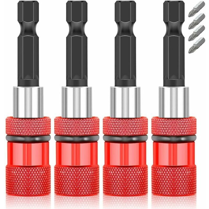 4 Pièces Porte Embout Magnetique,1/4' 60mm Porte Embout Visseuse a choc,Hex Tige Porte-embout de Tournevis Magnétique,Magnétique Extension de