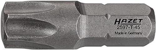 HAZET 2597-T45 Embout de tournevis Torx I Ouverture de clé : T45 ILongueur 25mm I Valeurs de couple élevées pour une longue durée de vie I Entraînement hexagonal 1/4 de pouce (6,3 mm)''.