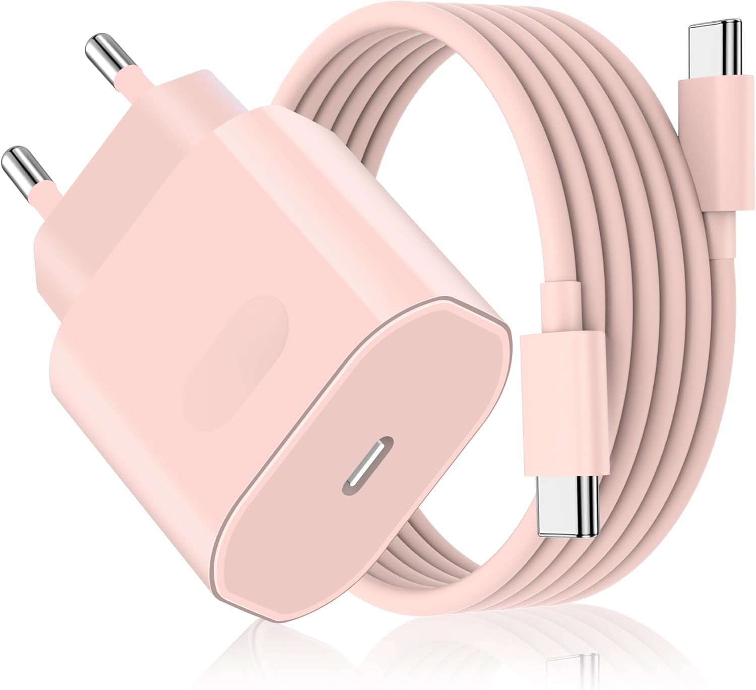 Chargeur Rapide pour iPhone 17/17 Pro/17 Pro Max/17 Air, iPhone 16 15 Pro Max, iPad P ro/Air, Prise Adaptateur Secteur Embout USB C 27 W avec Câble USB-C 2M(Rose)