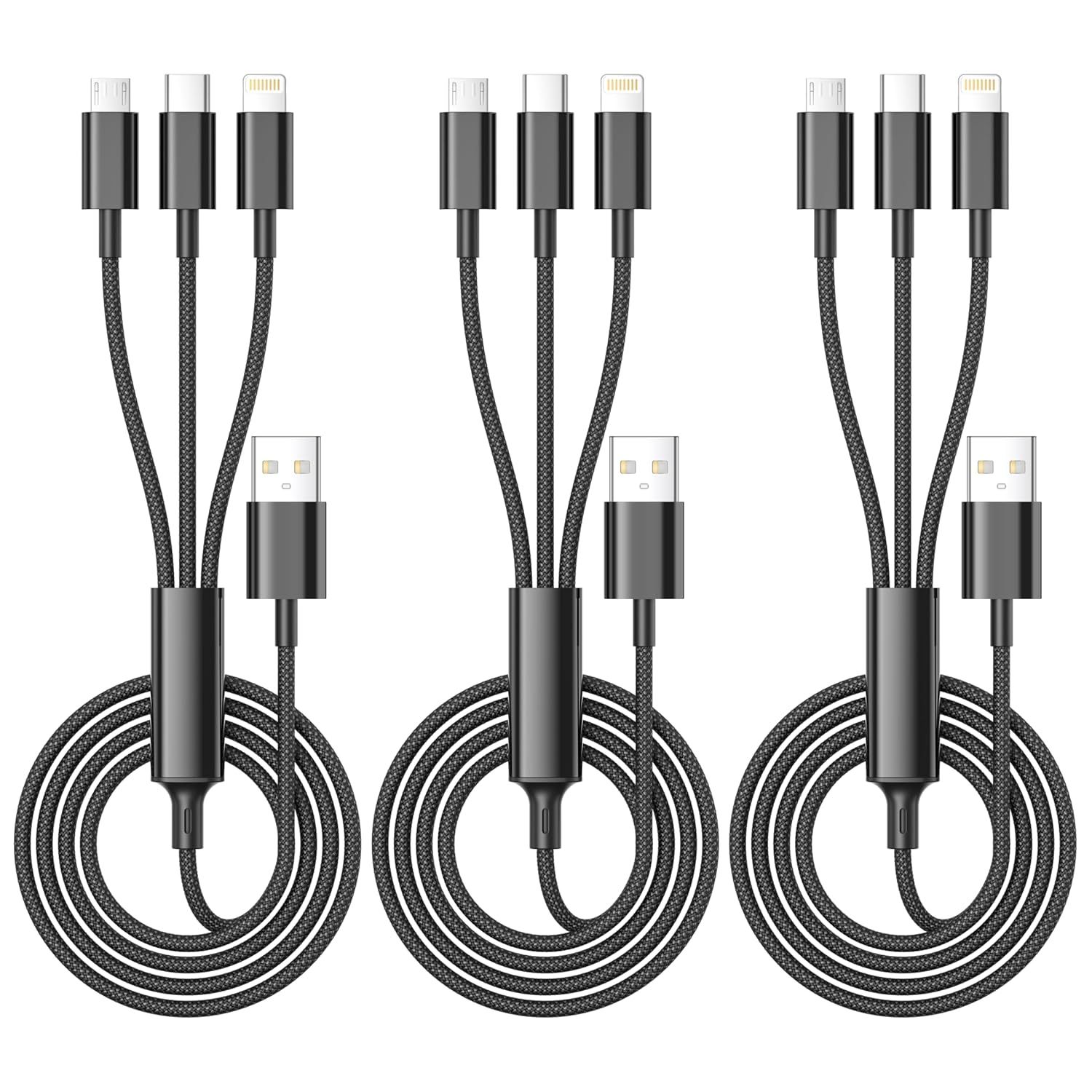 Câble Chargeur Multi Embout,3 en 1 Câble Universel [1.2M/Lot de 3] Câble multi chargeur de Chargement avec Lightning+ USB C+ Micro Connecteur pour iPhone 13/12/11/XS,Galaxy S21 S20,Huawei P30 P20