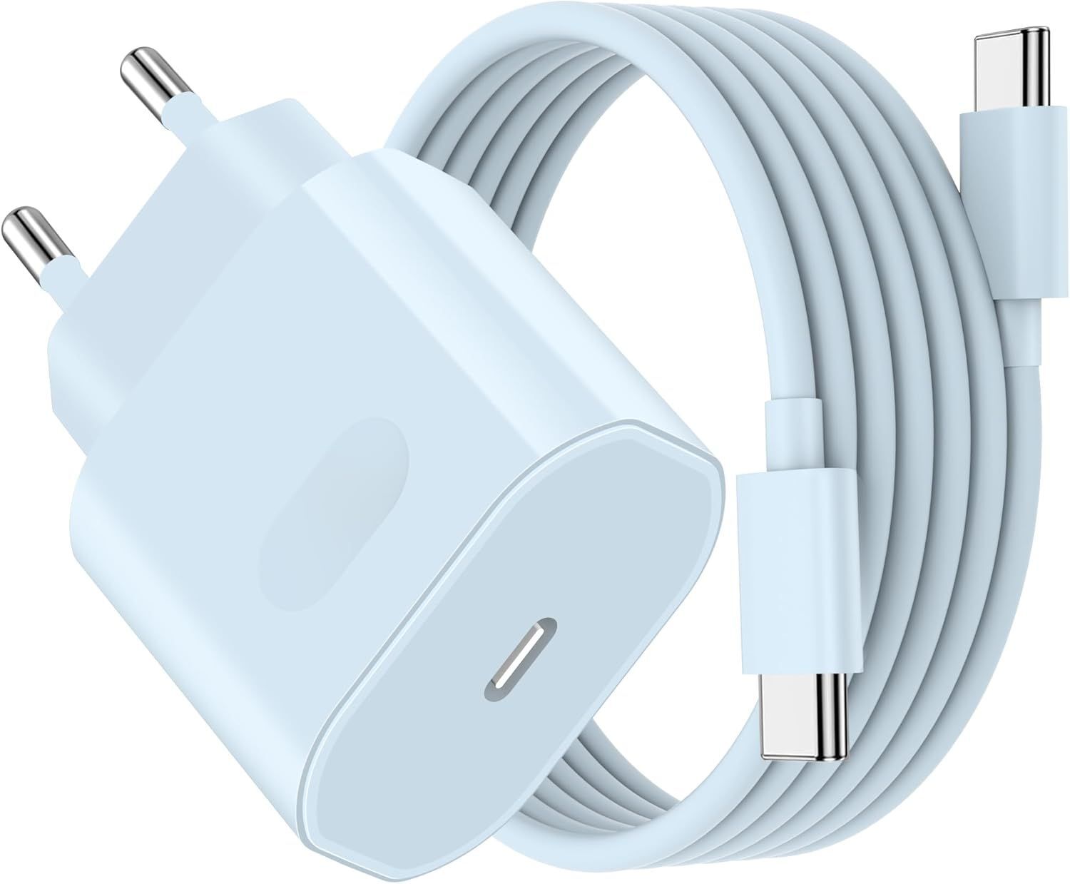 Chargeur Rapide pour iPhone 17/17 Pro/17 Pro Max/17 Air, iPhone 16 15 Pro Max, iPad P ro/Air, Prise Adaptateur Secteur Embout USB C 27 W avec Câble USB-C 2M(Bleu)