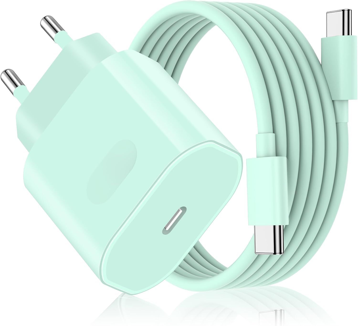 Chargeur Rapide pour iPhone 17/17 Pro/17 Pro Max/17 Air, iPhone 16 15 Pro Max, iPad P ro/Air, Prise Adaptateur Secteur Embout USB C 27 W avec Câble USB-C 2M(Vert)