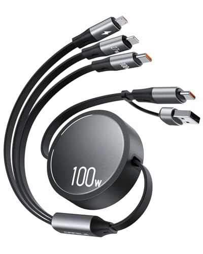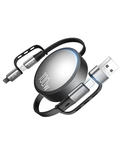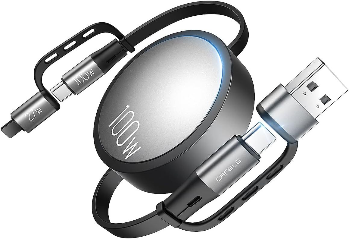 CAFELE 100W 4 en 1 Câble de Charge Rétractable,PPS PD 3.0/QC4.0 Cable Chargeur Multi Embout USB A/C,Enrouleur pour 17 16 Plus/Pro Max/15/14,MaBook,Pad Pro,Galaxy S24/S23