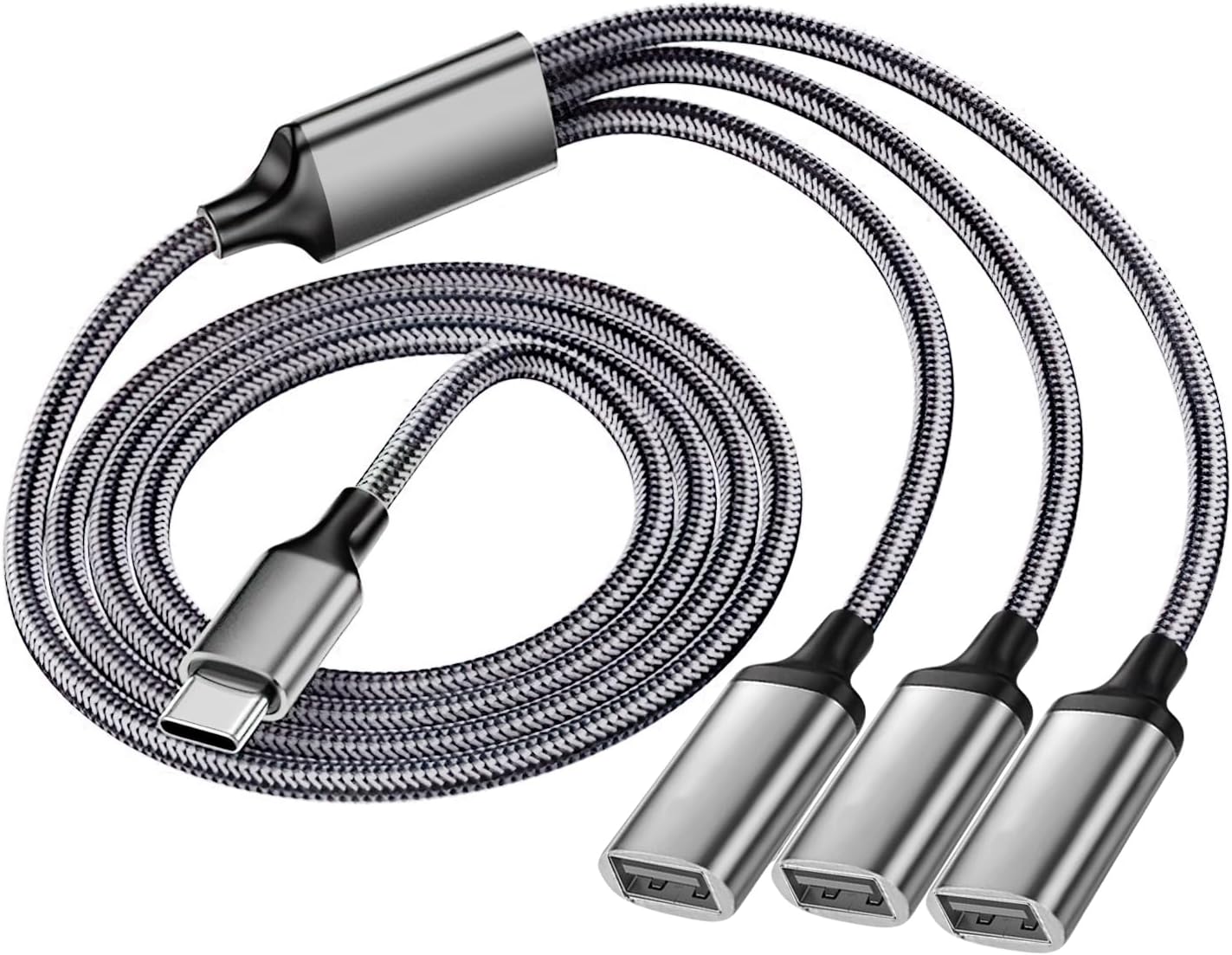 TRAHOO-Répartiteur USB C 1 vers 3 1M, Câble Chargeur Multi Embout USB C vers A pour Charge et Transfert de Données, Adaptateur Type-C pour iPhone 16 15 Samsung S25 S24 S23 Macbook Clavier Imprimante