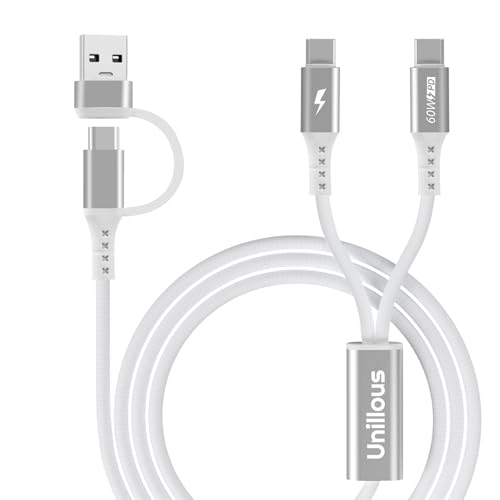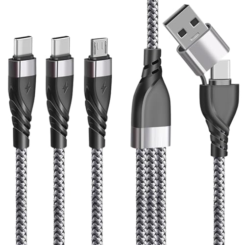 1M Câble Multi USB Universel Port USB + 2 USB C + Micro USB, Multi Cable USB C 4 en 1 PD Charge QC 3.0 Chargeur, Multi Embout USB C vers Micro USB Compatible avec iPhone15, Samsung Android