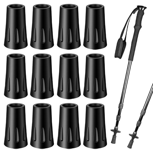 Lot de 12 embouts en caoutchouc pour bâtons de trekking, tampons de rechange en caoutchouc antidérapants de 11 mm pour bâtons de randonnée, bâtons de marche et marche nordique