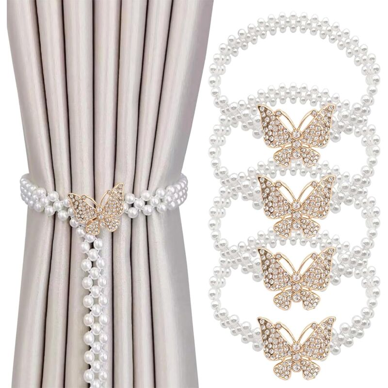 Embrasse pour Rideaux, 4 Pièces Embrasse Rideau Moderne Papillon Perle Rideau Boucle Embrase Rideaux Attache de Rideaux Embrase Rideaux pour