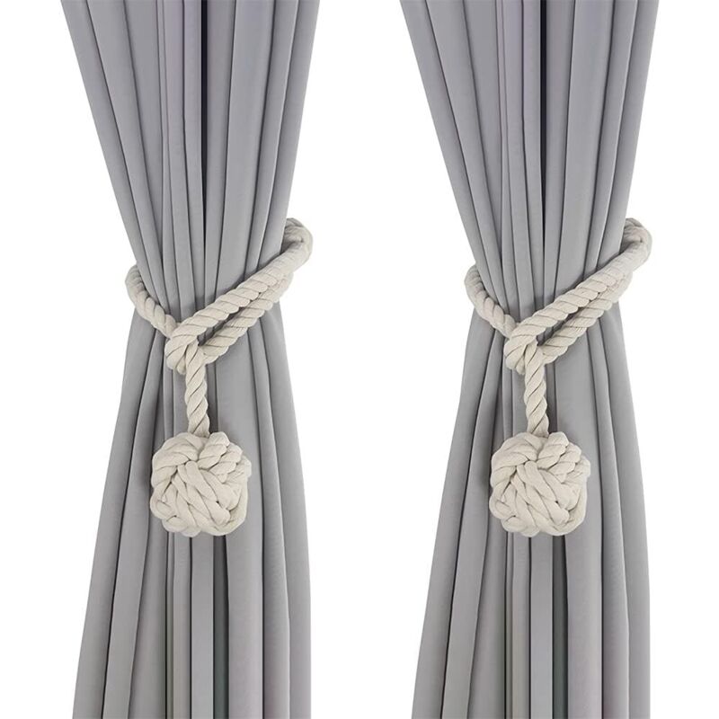 sonlpaakk 2PCS Embrasse pour Rideaux, Attache Rideau Magnetique, Boucles de Rideau en Coton Faites à La Main, Moderne et Minimaliste Embrase de Rideaux Aimanté pour Maison Chambre Salon Bureau - Beige