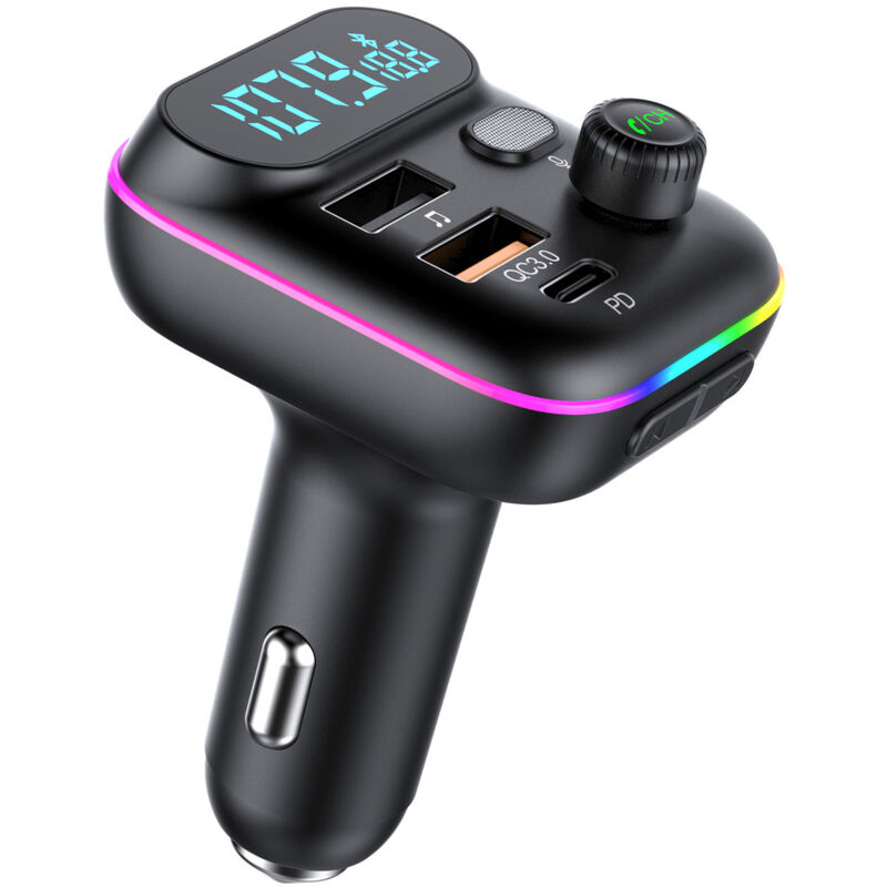 Transmetteur fm Bluetooth 5.0 Adaptateur Bluetooth Voiture Kit Émetteur fm Voiture Chargeur avec Ports QC3.0 &5V/2.4A,Appel Main Libre,Lumière