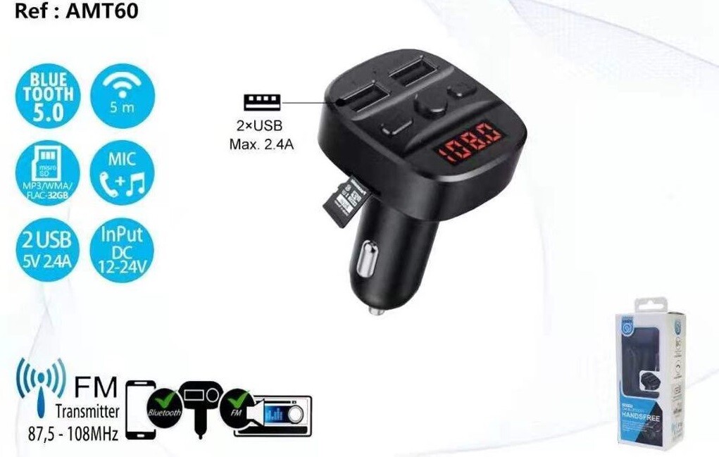 X Émetteur Fm Bluetooth Pour Voiture 2 Ports Usb Led Tf Wma Mp3 Amt60 Sus