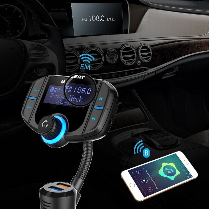 Émetteur FM Bluetooth pour voiture - Compatible avec la charge rapide QC3.0, les appels mains libres, deux ports USB et le son stéréo