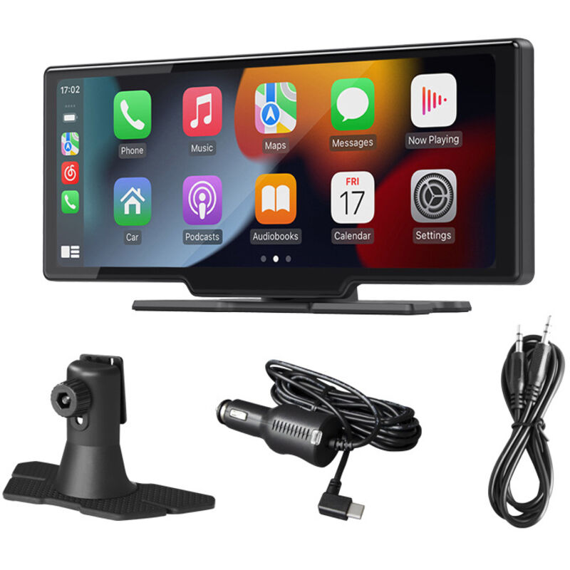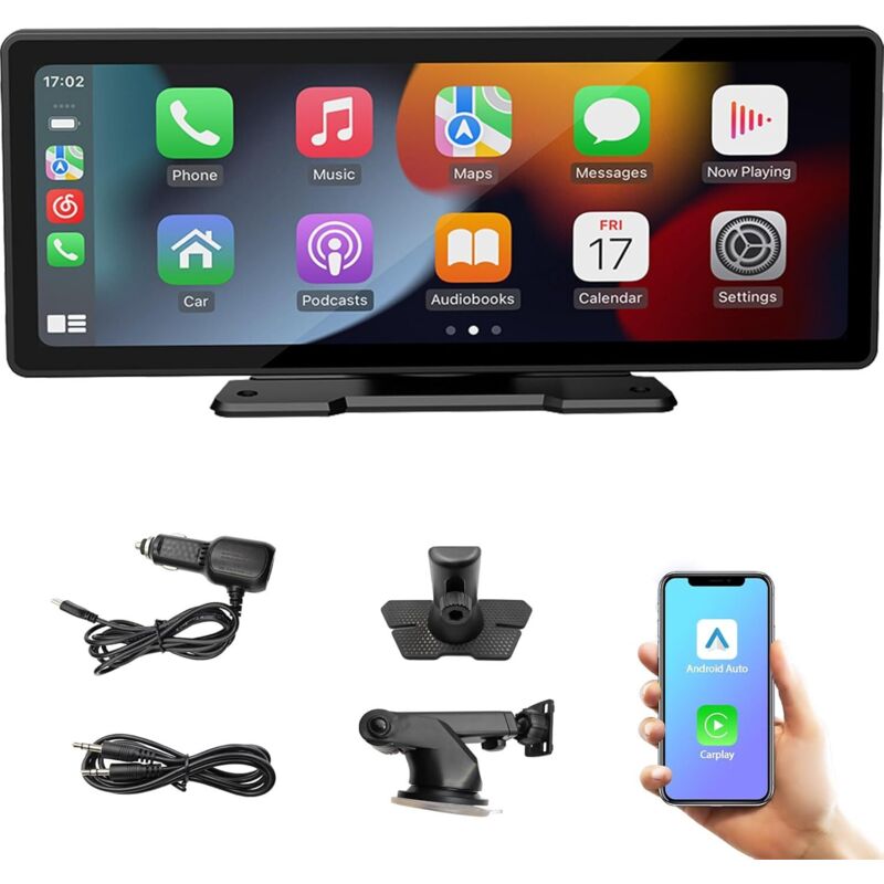 Audio de voiture portable de 10,26 pouces avec A-pple Carplay sans fil Android Auto, écran tactile 7-32 V, assistant vocal/Bluetooth/émetteur