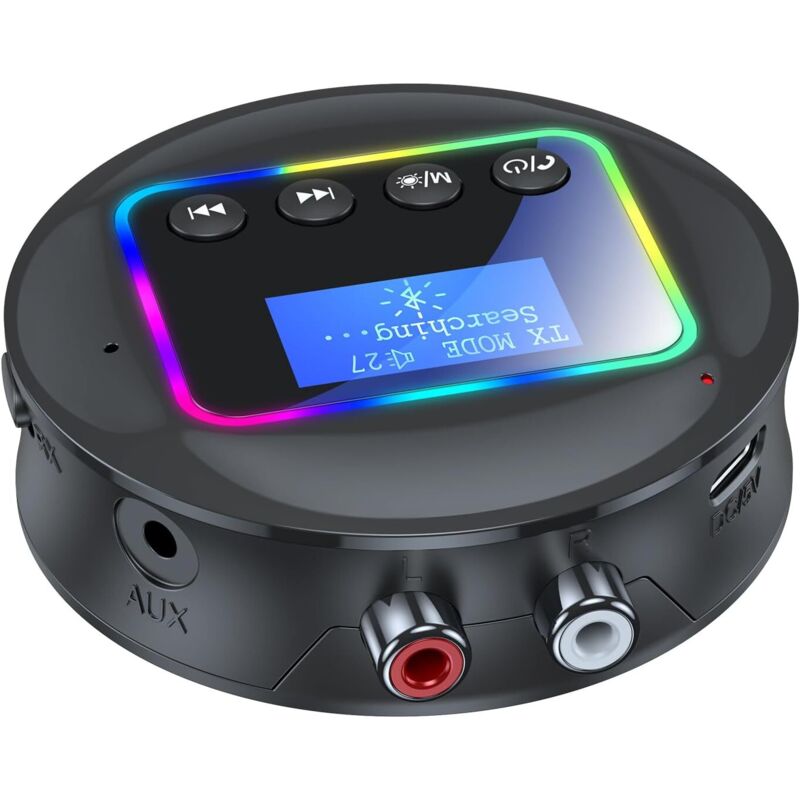 Émetteur-récepteur USB Bluetooth 5.0, Mini Adaptateur Audio sans Fil 2 en 1, Adaptateur AUX Bluetooth LED RVB pour Téléviseur, PC, Haut-parleurs, Système Stéréo de Voiture et de Maison