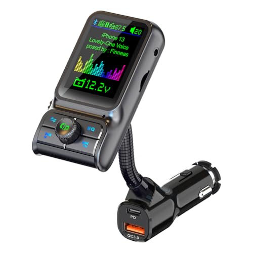 Émetteur Bluetooth FM pour la Voiture, récepteur Radio/Adaptateur Audio avec Chargeur de Voiture USB + PD, 7 Couleurs LED Prise en Charge des Mains Libres Caldre TF Carte Flash USB Drive