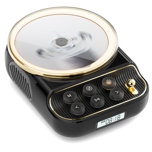 COLSUR Lecteur CD de bureau avec émetteur Bluetooth, lecteur CD portable avec haut-parleurs et minuterie, lecteur radio CD avec port AUX/TYPE-C, housse de protection contre la poussière,écran LCD-Noir