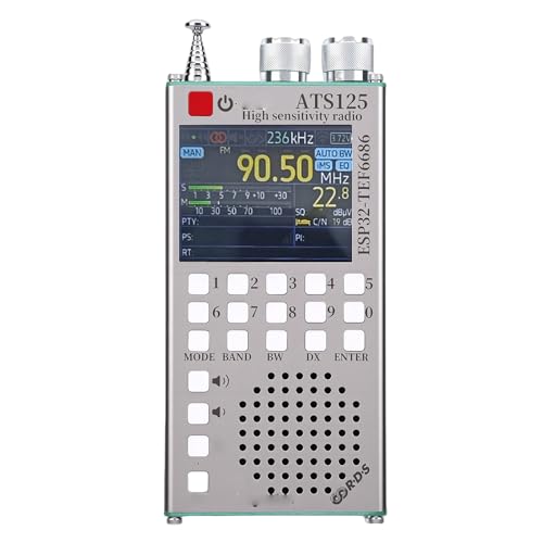 Hndhbfgrt Radio FM Pleine Bande ATS-25 avec Sortie Stéréo, Télécommande Infrarouge, Émetteur Bluetooth, Type C, Écran Tactile 2,8 Pouces, Blanc.