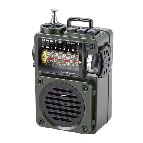 Decumeby Radio Portable à Ondes Courtes, émetteur-récepteur à Ondes Courtes AM FM SW NOAA, Haut-Parleur Bluetooth Rechargeable avec Rétroéclairage pour Enfants âgés à la Maison