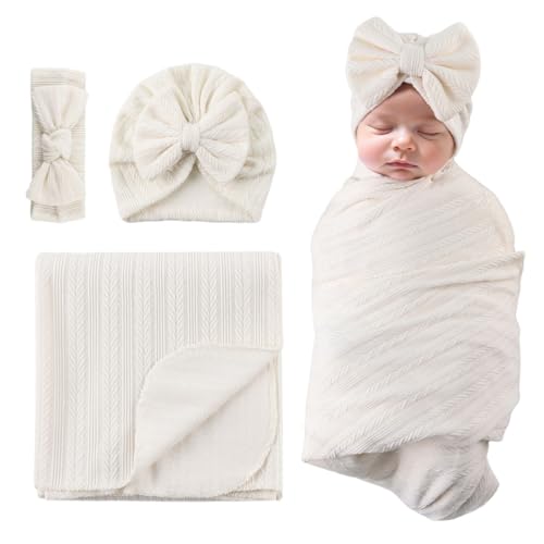 Vicloon Emmaillotage Bebe, Couverture Emmaillotage Bebe, Sac de Couchage pour Nouveau-Né de 0 à 3 Mois, avec Chapeau et Bandeau Nœud, pour Couche Plaid Gigoteuse Couverture Serviette